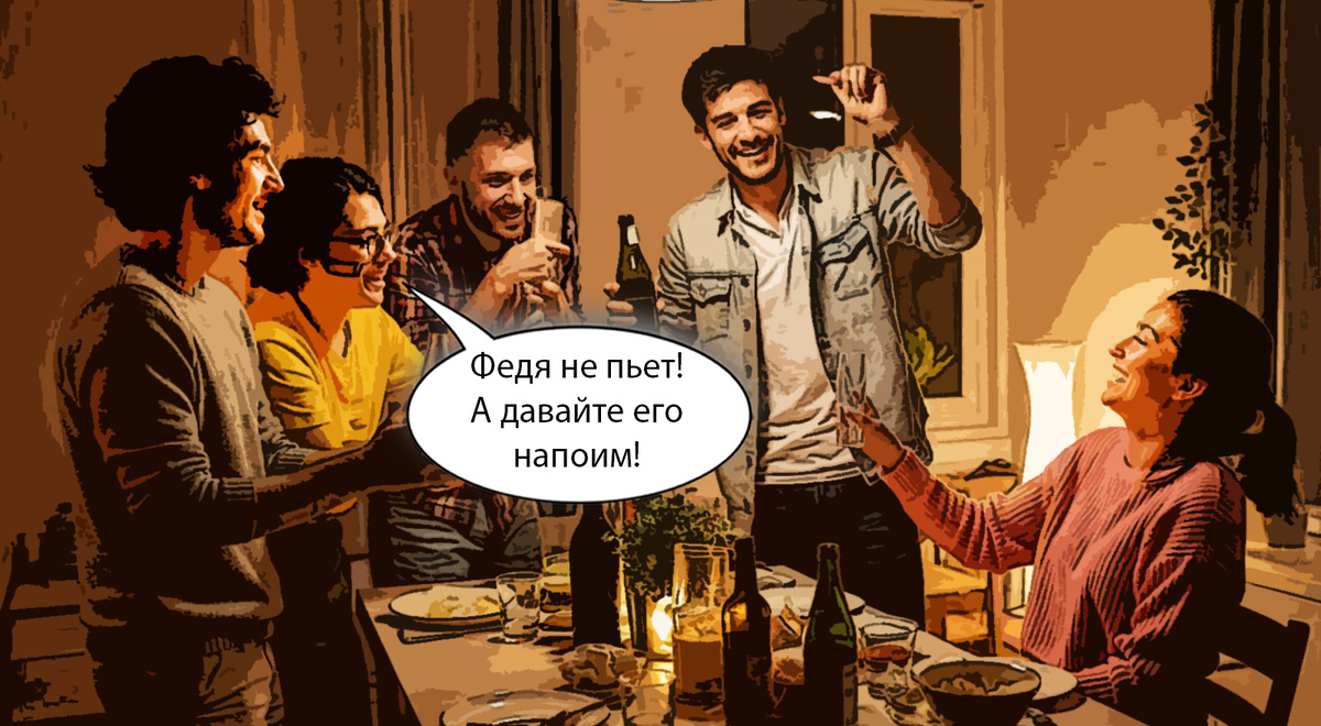 - Виноваты ли «подговорщики»? Я считаю, что да. Они осознают последствия, знают об ограничениях, но сознательно ведут человека в пропасть. Веселья не хватает?! А почему в других компаниях условный Федя/Юра просто душнила, а с ними – нажирается? Мы уже разобрались – он снимает с себя ответственность таким образом. Но ВАМ-то это зачем?! Вы косвенный, а подчас и прямой триггер, который запускает эту реакцию! Для чего?!