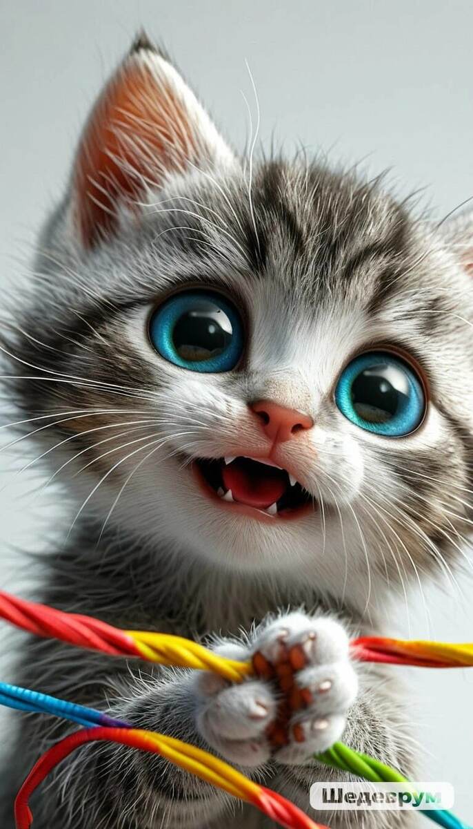 Насмотрелась наша хозяйка, сиречь - моя жена и Великий Инквизитор прайда, как мелкая Тигруня в одну харю играет с верёвочками, не даёт играть с ними Беляшику и пытается ему мешать. Потом жена засела за свои "нервные сети" и нагенерила несколько картинок. Вот они: