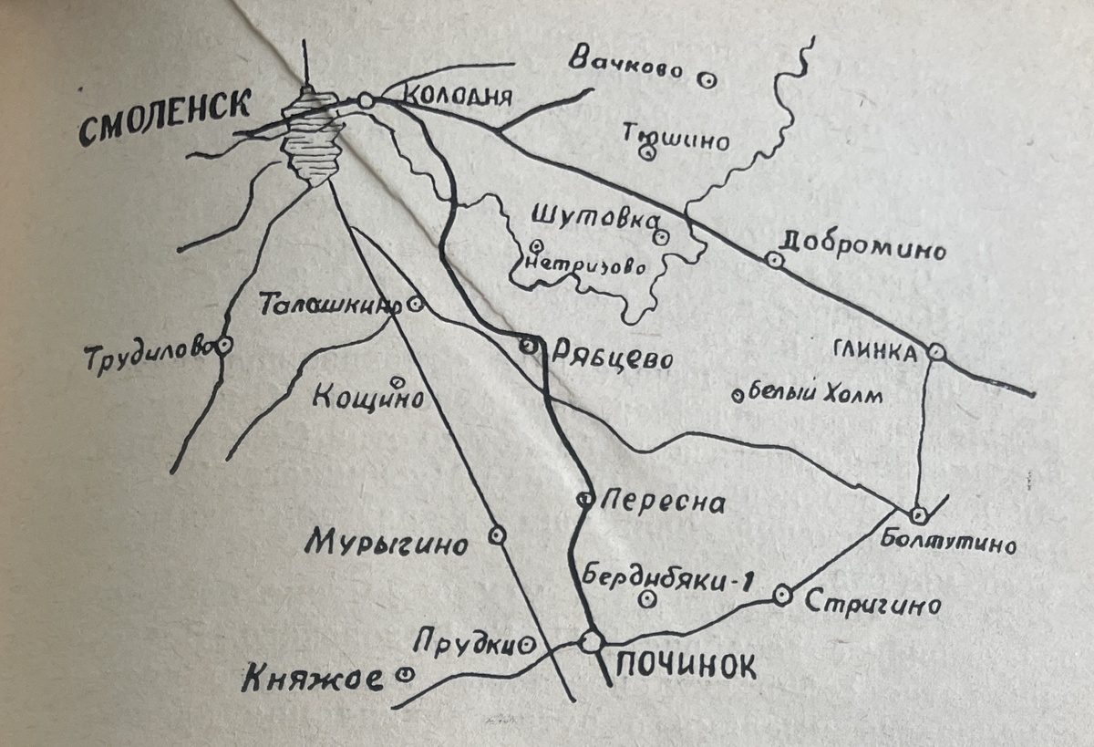 СМОЛЕНСК — ПО ДНЕПРУ ДО ШУТОВКИ - СТ. ПРИДНЕПРОВСКАЯ - ДОБРОМИНО — ДУБОСИЩЕ - БЕЛЫЙ ХОЛМ - ЛЯХОВО - ЯЗВИНО — ЛОБКОВО - ПОЧИНОК — ТАЛАШКИНО - СМОЛЕНСК