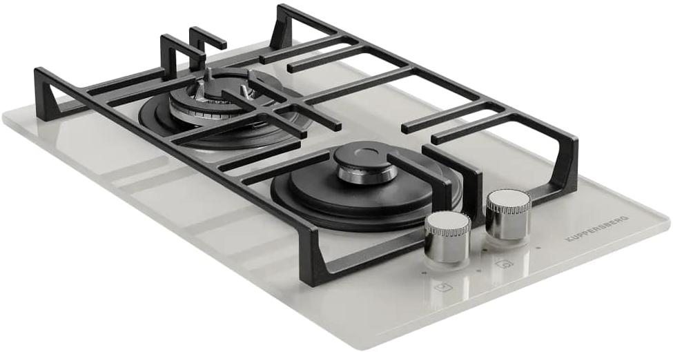 Газовая варочная панель Kuppersberg FG 39 W создана для тех, кто ценит комфорт, стиль и функциональность, даже если пространство ограничено. Модель шириной всего 30 см идеально подходит для небольших кухонь, квартир-студий и дач. Несмотря на компактность, она оснащена двумя мощными конфорками, позволяющими готовить одновременно два блюда без потери удобства. Основа панели выполнена из закалённого стекла белого цвета. Оно не только эстетично выглядит, но и легко очищается от жира и капель. Стекло устойчиво к перепадам температуры и царапинам, а элегантный оттенок придает кухне воздушность и современность. Чугунные решетки придают уверенную устойчивость посуде и долго сохраняют внешний вид, даже при интенсивной эксплуатации. Металлические поворотные переключатели выдерживают ежедневное использование и смотрятся солидно. Обе конфорки снабжены системой автоматического электроподжига — пламя зажигается при повороте ручки, никаких спичек и зажигалок. Встроенный газ-контроль отключает подачу