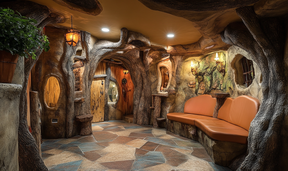 Оптимум — от 2,5 метров. Низкие потолки могут «съедать» атмосферу. А если хочешь встроить потайные проходы, вентиляцию или технические трюки — будет простор для фантазии.