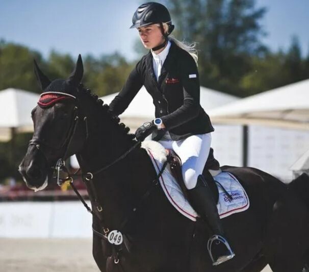 Сначала поговорим об экипировке для соревнований по конкуру. В первую очередь всадник обязан носить берые бриджи и редингот (это пиджак для выступления ). Под рединготом всадник должен надеть рубашку поло с воротником стойкой, а также галстук, что не обязательно для мужчин. Всадник должен иметь при себе белые перчатки. Обычно на соревнованиях по конкуру всадники выступают в сапогах, но могут выступать и в ботинках с крагами. Но нужно иметь ввиду, что для каждых соревнований свои требования. Всадник обязан быть и на разминочном и на боевом поле в шлеме, иначе его могут дисквалифицировать. Шлем всегда должен быть застегнут. При себе всадник во время выступления может иметь часы, очки ремень, а также конкурный хлыст, который должен быть длиной не более 75 см. Им можно дать не сильную команду только по плечу и не более 3-х раз. В плохую погоду всадникам могут разрешить выступать в дождевике или непромокаемой куртке. На соревнованиях по выездке на всаднике должны быть белые бриджи с ремн