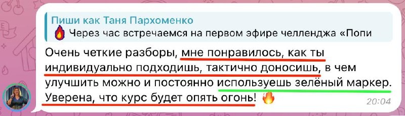 Это сделали за меня — объявили о старте продаж моего курса На эфире много говорили о текстах: — как улучшить посты, чтобы их читали НЕ по диагонали — можно ли разложить творческий процесс по формулам, а потом заново собрать — чем тексты помогут маме в декрете… И каждый раз упоминали о моем курсе по копирайтингу «Текстология». Потому что там я делюсь с учениками всем, что знаю сама. И это не оторванные от реальности нудные выкладки — нет! ➡️Только прикладные навыки, за которые хорошо платят заказчики (об этом еще поговорим). Даже в эпоху искуственного интеллекта. 🤫Пока не буду много писать о программе курса. Просто посмотрите лишь некоторые результаты моих учеников вот ЗДЕСЬ.