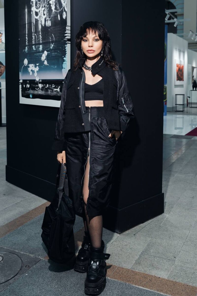 Новый черный образ • юбка и куртка в коллаборации sacaiofficial • сумка prada • топ спортивный (винтаж) • украшение rushev • ботинки — моя обувная униформа official.urbanator newrock Мероприятие VIP Preview Ярмарки современного искусства Art Russia 2025