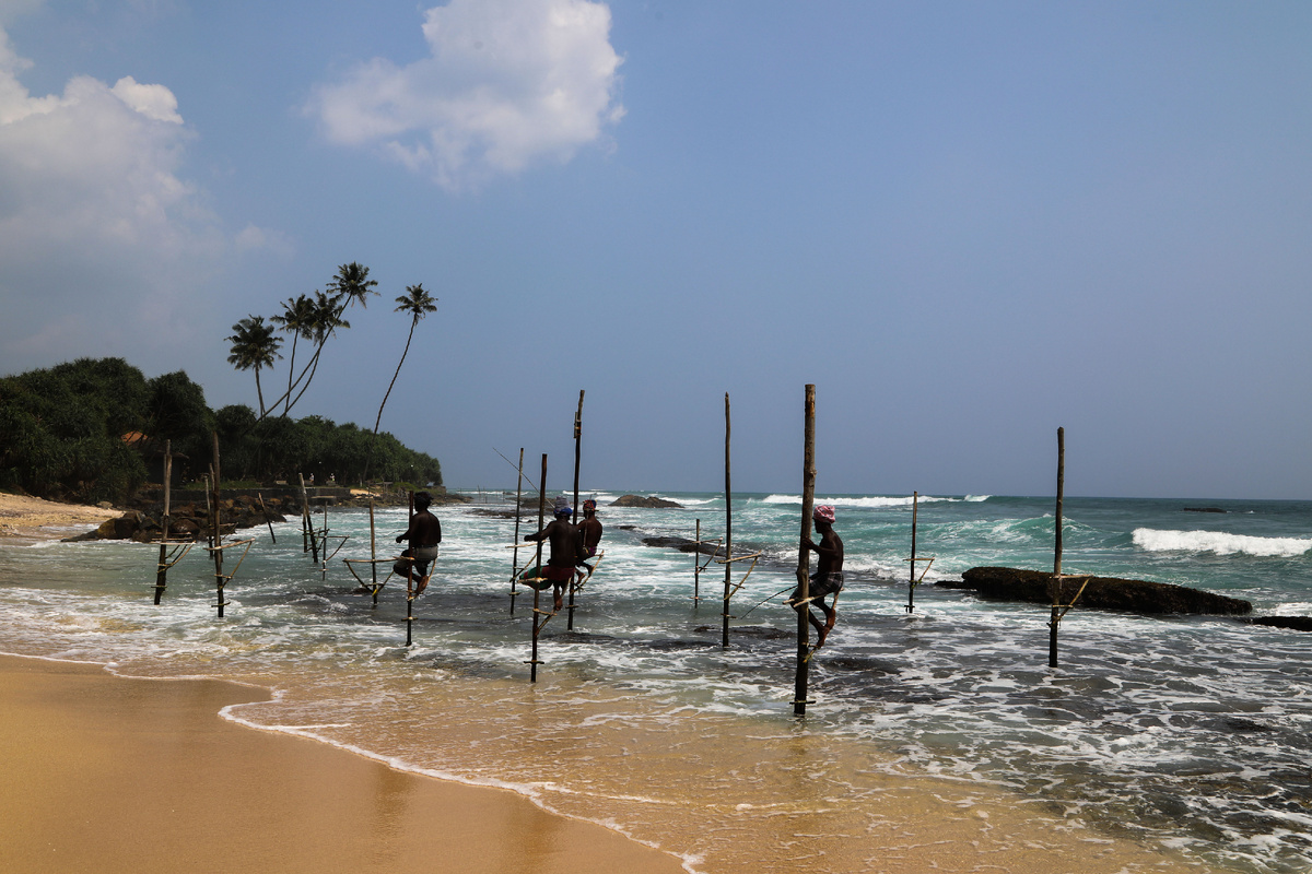 Завершающим пунктом нашего маршрута стало знакомство с необычным способом рыбной ловли. К сожалению, мы прибыли в неудачное время, так как рыбалка приходится на раннее утро (до 9:00) и предвечерние часы (после 16:00), когда рыба подплывает к берегу. Местные рыболовы специализируются на добыче небольших видов рыб, преимущественно пятнистой сельди и скумбрии, используя для хранения улова специальные рыболовные сумки.