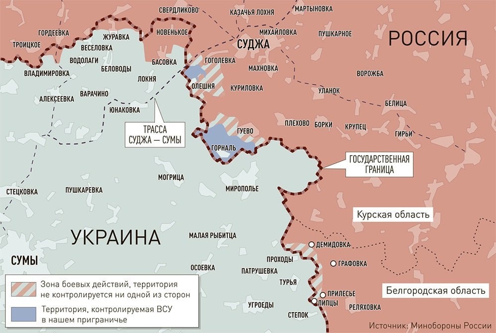 Интересная карта - где территория Курской области ещё занята ВСУ, где идут бои в Курской и Белгородских областях: у