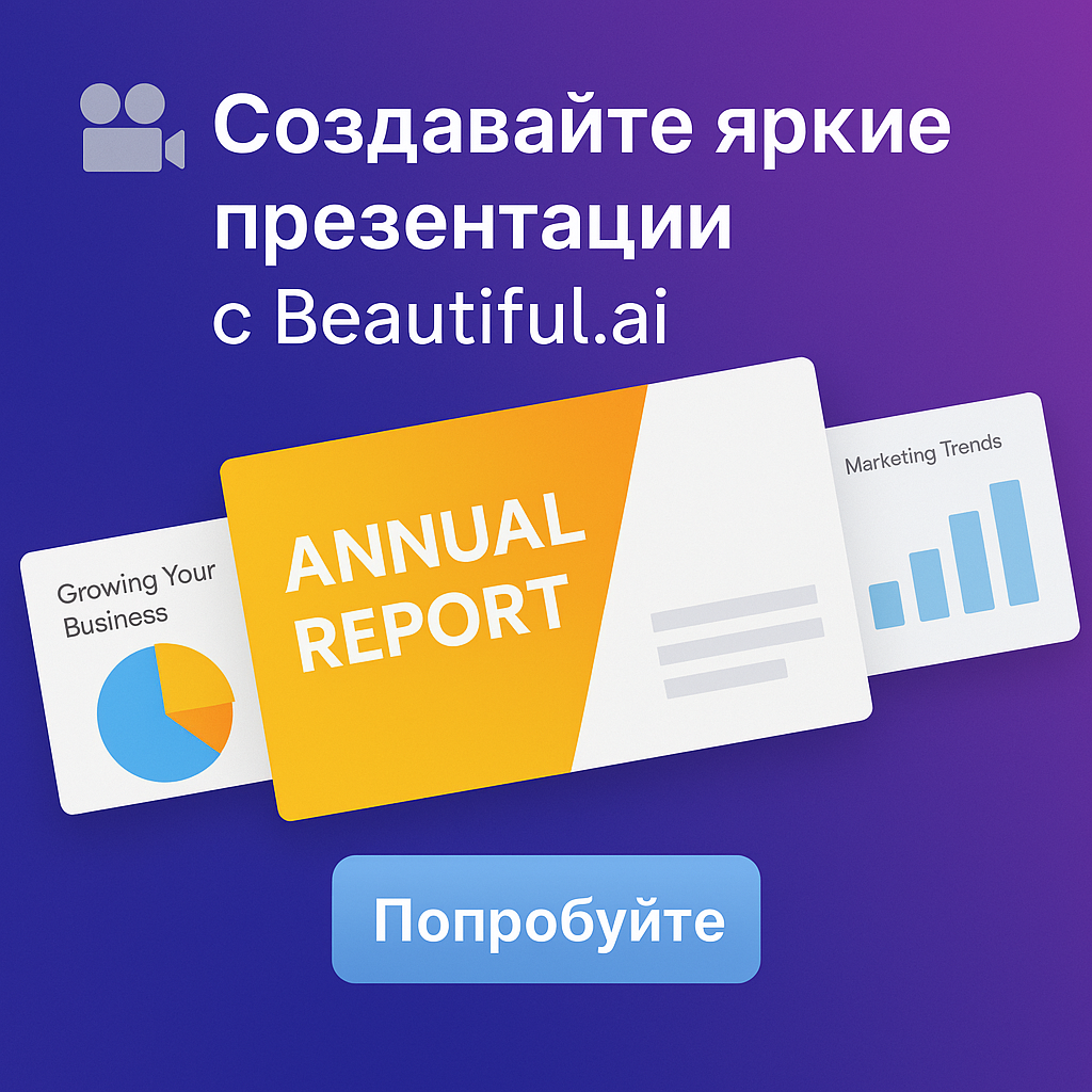 Представьте: вам срочно нужно подготовить презентацию, а PowerPoint вызывает зевоту и тоску. Нет времени нанимать дизайнера или возиться с шаблонами? Есть решение — Beautiful.ai. Это онлайн-сервис, который сам подбирает стиль, оформление и анимации для ваших слайдов. Вам остаётся только вставить контент. Попробуйте Beautiful.ai для своего следующего проекта и посмотрите, насколько проще стала работа. А если уже тестировали — расскажите в комментариях, чем вас зацепил этот инструмент.