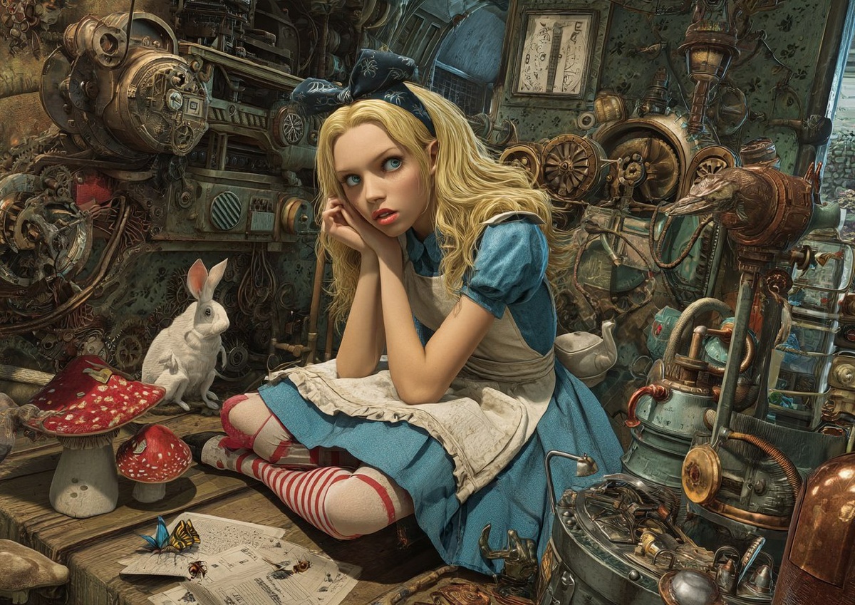 Создано на основе запроса: alice in wonserland 🕰️ ⚙️ 🐝 🦋