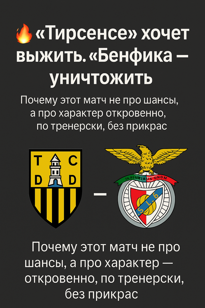 И вот почему: “Тирсенсе” — это команда, которая сейчас бьется за жизнь, а не за очки. Для “Бенфики” этот матч — как зубная щетка утром: обязанность.