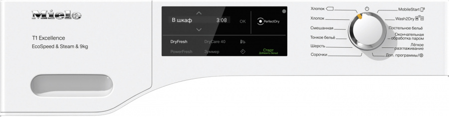 Сушильная машина Miele TEL785WP — это инновационное устройство, предназначенное для тех, кто ценит максимальный комфорт и высокую эффективность при уходе за своим бельем. Модель оснащена передовыми технологиями, которые обеспечивают не только быструю, но и бережную сушку разных типов тканей. Стильный дизайн и компактные размеры делают эту сушильную машину отличным решением для современных интерьеров. Одной из главных особенностей Miele TEL785WP является система PerfectDry, которая гарантирует точный контроль остаточной влаги. Эта технология автоматически регулирует степень влажности в зависимости от типа ткани, что позволяет избежать излишней сушки и повреждения материалов. Даже самые деликатные ткани, такие как шерсть или шелк, будут сушиться с максимальной осторожностью. Сушильная машина оснащена тепловым насосом (HeatPump), что позволяет эффективно сушить белье при меньшем потреблении энергии. Использование этой технологии помогает значительно снизить затраты на электроэнергию, при