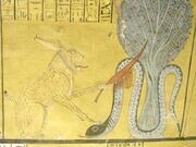 Ра в образе кота повергает Апопа в образе змеи