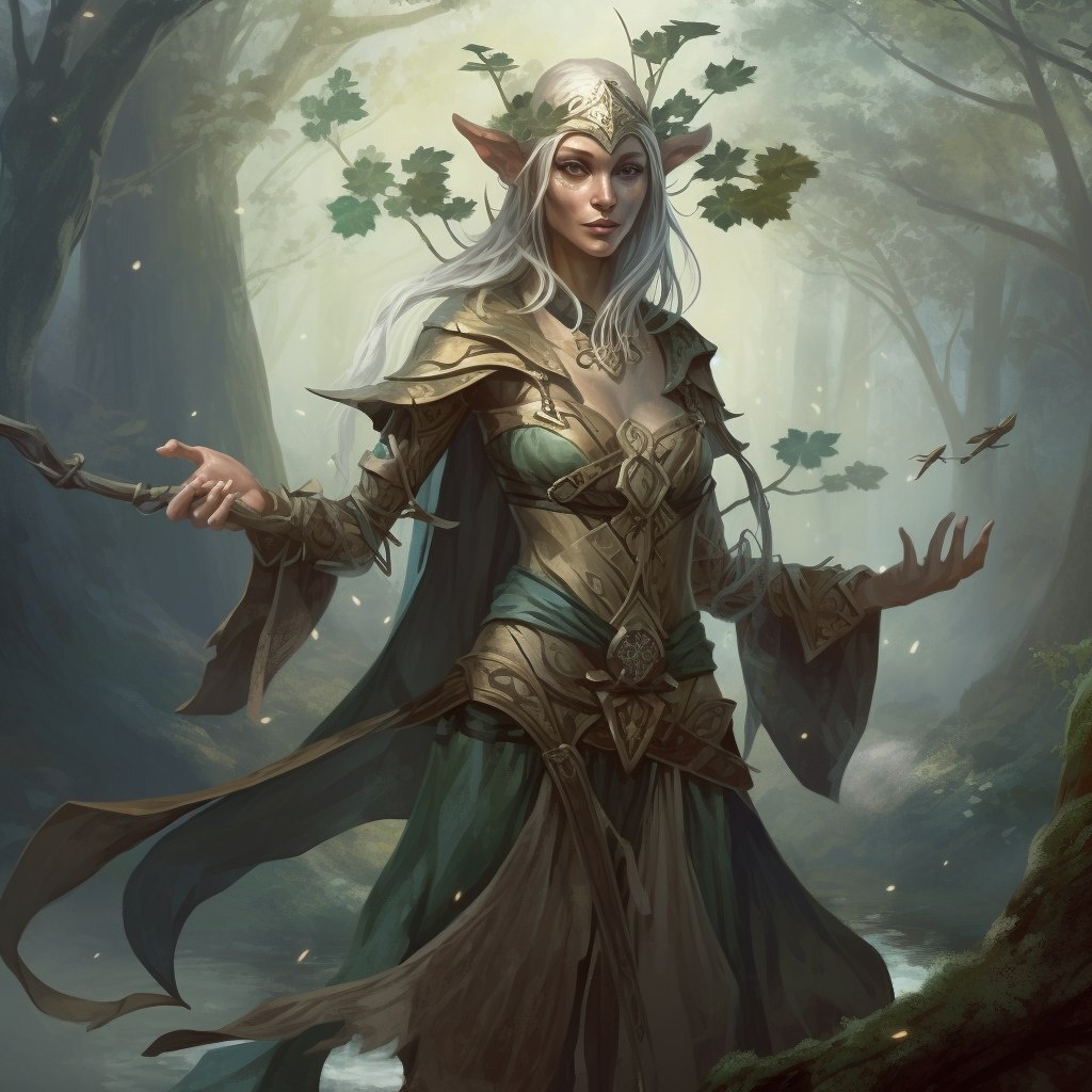 Создано на основе запроса: a female wood elf, front view, full body view, magic the gathering art style, high definition