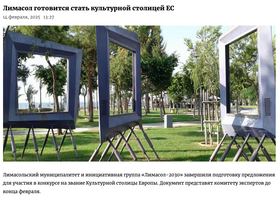 Тут некоторые краеведы поднимали наглый и беспочвенный геволт за мои кипрские мансы. Шумели, что имеют набить таким нацменам вывеску через неуважение к местным порядкам. А я же со всей душой рассказывал за Лимасол-папу. Что это город высокой культуры быта и вообще. Будьте известны, мои слова попали до правильных ушей. Аж сам Еврейский Союз имеет видеть Лимасол за свою культурную столицу.