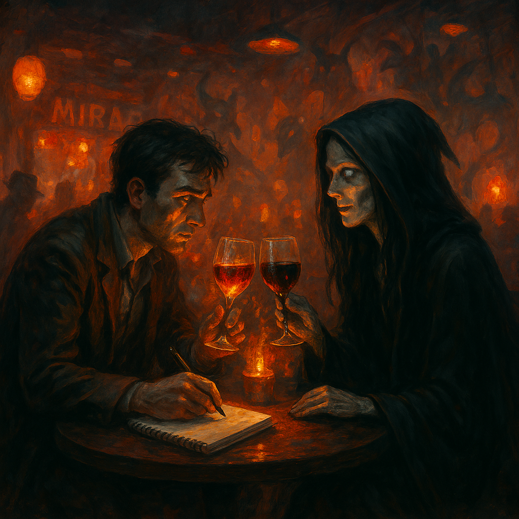 — Вот уж не думал, что у смерти есть вредные привычки… Отчего же не выпить. И всё же, почему ты решила со мной заговорить? — Поинтересовался я.