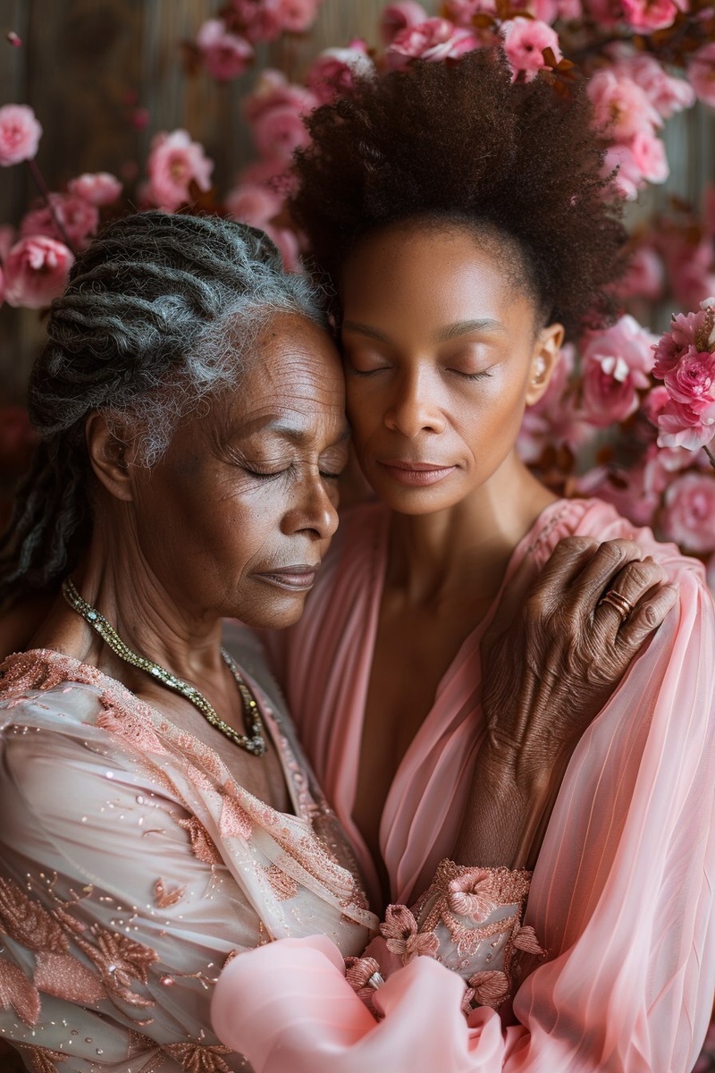 Создано на основе запроса: Two older dark-skinned Black women in their late 40s, embracing each other tightly in a moment of deep forgiveness. One woman has braids, the other wears a natural afro puff. Both are dressed in soft, flowy outfits --- Автоперевод: Две старшие темнокожие чернокожие женщины в возрасте 40 лет, крепко обнимая друг друга в момент глубокого прощения. Классно получилось? 🤔 https://dzen.ru/id/65c0c65c86e4f837c27b24d7 #ИИ #AI #нейросеть #midjourney #art