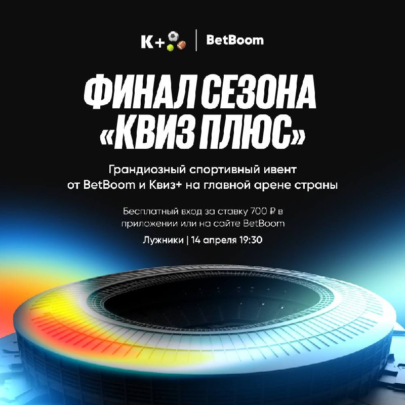 Мои хорошие друзья из BetBoom, которые еще и являются партнером нашего любимого клуба - проводят очень масштабное событие, крутой ивент на главной спортплощадке России. Как туда попасть? 🔥🔥🔥🔥🔥 на квиз: собирайте команду от 1 до 12 человек и приобретайте билет по ссылке 🫲 🎟 Самый ВЫГОДНЫЙ БИЛЕТ на квиз – по акции от BetBoom (ставка от 700 рублей с коэффициентом от 1.5). Это финал. Это Квиз. Это ваш шанс стать частью истории. До встречи на главной арене страны 14 апреля! Встречаемся прямо на Большой спортивной арене 14-го апреля по адресу: Лужники, 24, стр. 1 • Начало – в 19:30. @ButsaD × @BetBoom