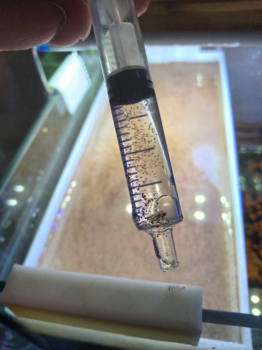 В некотором роде у нас новые питомцы😎 На самом же деле, это науплиусы артемии, универсальный живой корм для малька рыб. Далеко не все виды рыб согласны расти на сухих кормах и святой зеленой воде, поэтому аквариумисты зачастую растят и живой корм, подходящий тому виду рыб, который разводят. Артемия - красивый жаброногий рачок, набор с ними как с самостоятельными питомцами, вы можете встретить в Фикспрайсе. "Морские обезьянки" или что-то вроде этого. Каждый раз, когда вывожу артемию, жалею о двух вещах: 🤨что нет подходящей техники с макрообъективом - снять, какие они интересные; 🙈и нет возможности и пространства растить колонию рачков. Тут с петушками очень лимитированное либо-либо по месту и уделяемому времени. В комментарии положу фото взрослой артемии из инета.❤️
