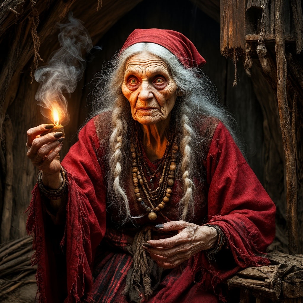 В глубине дремучего леса, где солнечные лучи едва пробивались сквозь густые ветви, жила старая Баба Яга. Она была известна на всю округу своими злыми чарами и коварством. Лесные звери обходили её дом стороной, а птицы замирали в тревожном молчании, стоило ей лишь показаться на пороге своей избушки. Баба Яга была мастерицей колдовства. Она знала множество заклинаний и обрядов, которые могли запутать и запугать любого путника, решившего проникнуть в чащу её леса. Днём она сидела на крыльце своей избушки, наблюдая за окрестностями, а ночью отправлялась на поиски новых жертв своих злых чар. Однажды, когда сумерки окутали лес, Баба Яга начала творить свои злые чары. Она взяла старый костлявый посох и, бормоча заклинания, начертила на земле круг. Затем она подняла руки к небу и произнесла слова, от которых воздух наполнился таинственным свечением. Вокруг неё закружились листья, а деревья зашептались, словно предупреждая всех о её замыслах. Злые чары Бабы Яги были направлены на то, чтобы
