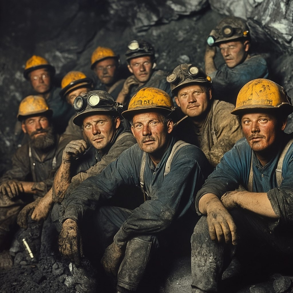 Создано на основе запроса: zoom background comprising a group of circa 15 American coal miners with helmets