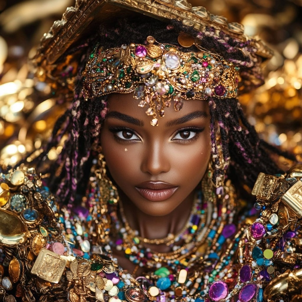 Создано на основе запроса: a gold blinging treasure chest half way open. The full of treasure and dreadlock jewelry and head scarves hanging out and colorful beads and hair accessories spilled out animation --- Автоперевод: Золотая колясканая сундук с сокровищами на полпути. Интересно выглядит? 🤔 https://dzen.ru/id/65c0c65c86e4f837c27b24d7 #ИИ #AI #нейросеть #midjourney #art