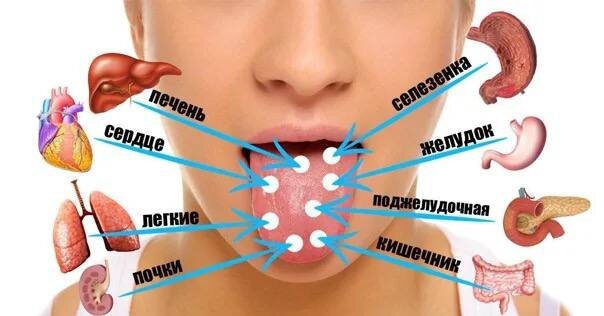 По языку можно увидеть состояние желудка, кишечника, печени, селезёнки, сердца.