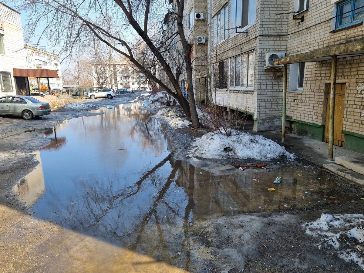 Из дома только вплавь или на лодке. Управляющая компания бездействует на проблему жителей Уже много лет жители дома 72 по улице 50 лет Октября, страдают от затопления двора весной и в дождливые периоды. Двор покрыт ямами, в которых скапливается вода - лужи глубиной доходят до 9-12см. Люди не могут попасть в свои подъезды, особенно в конце дома, дети с трудом выбираются в школу, старики ходят по стеночке. Люди устали «плавать». Вода никак не отводится, тротуар не ремонтируется, даже деревянные настилы не устанавливаются. УК на все жалобы жильцов либо отвечает: "Денег нет", либо обещает, что когда лужи высохнут естественным путем (что будет нескоро ввиду ожидающихся осадков), будет проведена засыпка ям щебнем. А так же, что двор "стоит в плане на благоустройство", но сроков, когда это случится, никто назвать не может, т.к. заниматься этим должна Администрация. Удивляет и удручает такое отношение. Жильцы дома 72 по адресу улица 50 лет Октября, чей двор с таянием снега в очередной раз