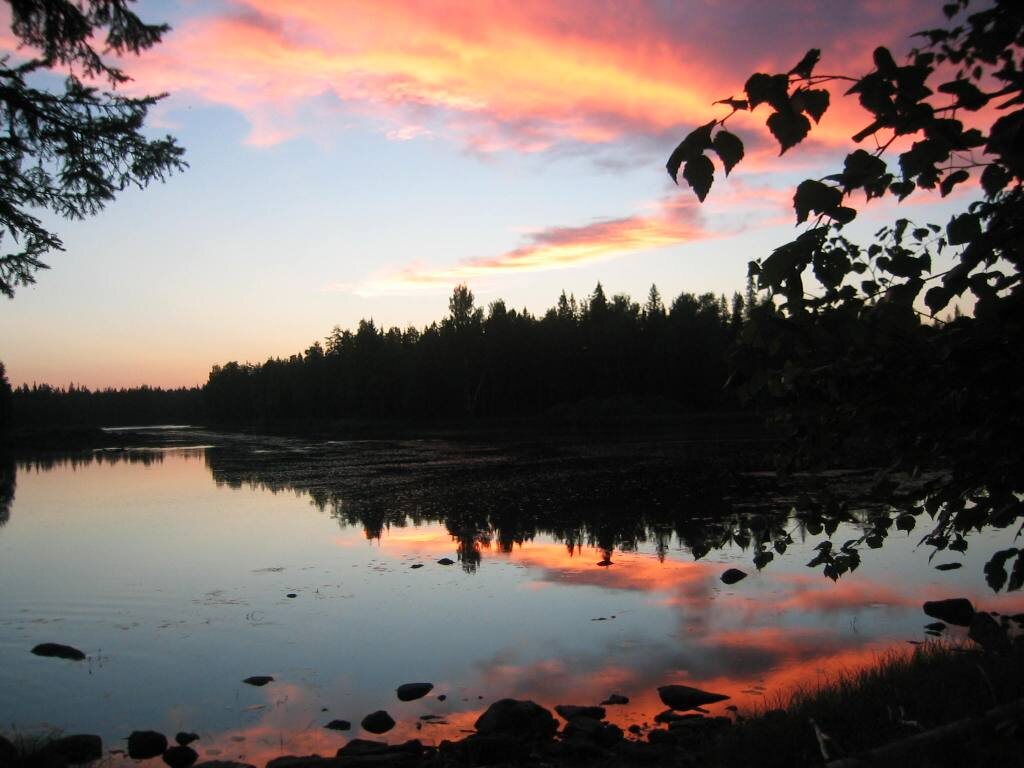 Тропка обманула, приведя в болото. На закате, через огромное болото, поросшее клюквой, в кроссовках по колено в воде, все двигаются дальше (не упустив возможности испить холодной, чистейшей болотной водицы). Комары уже не помеха – главное темп, который оставляет шансы вернуться на базу в срок.