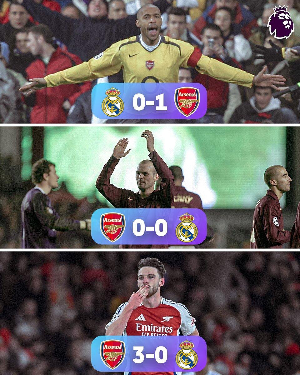 "Арсенал" трижды противостоял "Реалу" в Лиге Чемпионов и ни разу не проиграл ☝️