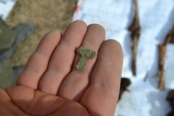Недалеко от деревни Акимовки работал поисковый отряд «Тишина» из Брянска. В этих местах в 1943 году велись ожесточённые бои с гитлеровцами, поясняется в группе объединения в соцсети «ВКонтакте». Была обследована территория, на которой больше 80 лет назад советские войска пытались закрепиться во время Жиздринской наступательной операции. «Вместе с останками обнаружено большое количество пуговиц от шинелей и гимнастёрок, несколько ременных пряжек, малая пехотная лопата, стеклянная хлорница, перочинные ножи, ложки, латунный православный крестик без верхнего луча, карандаш в гильзе, карманное зеркало, стальной эмалированный котелок и кружка», – перечислили некоторые свои находки в отряде «Тишина». Личных опознавательных медальонов и подписных вещей в раскопе обнаружено не было, поэтому установить имена погибших красноармейцев будет крайне затруднительно. За минувший год в Калужской области перезахоронили останки 1257 бойцов Великой Отечественной войны. Поисковый отряд «Тишина» Поисковый от