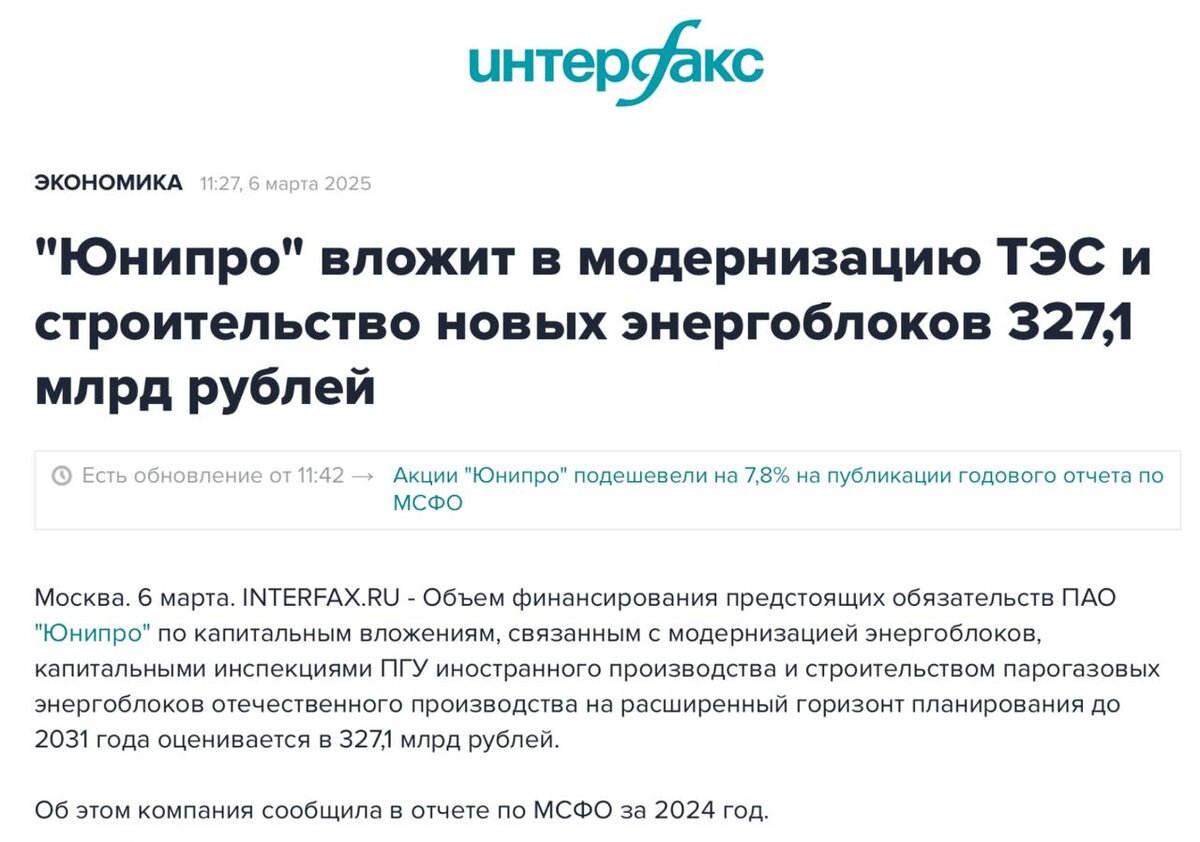 Мечты эти разбиваются о ряд факторов. Во-первых, даже если геополитический конфликт начнет разрешаться, Uniper едва ли вернут к управлению компанией, а значит возможности для выплат не появится в обозримом будущем. Во-вторых, по сообщениям самой компании, она вложит в модернизацию ТЭС и строительство новых энергоблоков до 2031 года, внимание, 327,1 млрд рублей.