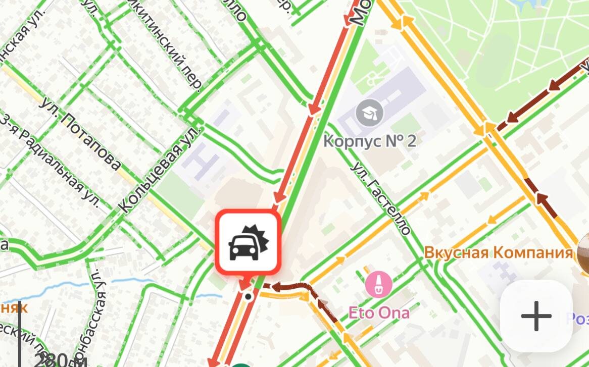 Инцидент произошел рядом с торговым центром Охотный ряд. Судя по данным приложения "Яндекс Карты", участок дороги в сторону исторического центра Самары окрасился в багровый. Водителям рекомендуется заранее выбирать альтернативные пути.