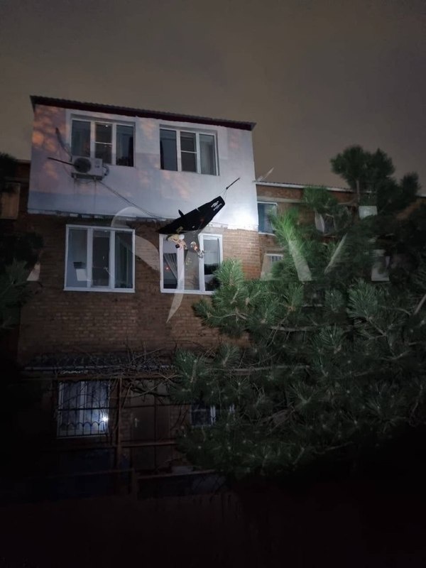 Донецкая группа новостей|Донецк.ДНР (VK) Фото беспилотника, застрявшего на бельевой веревке в жилом доме в Аксае Ростовской области Всех жильцов многоквартирного дома на улице Платова, 74 эвакуировали из-за угрозы возможной детонации застрявшего БПЛА, сообщили местные власти. Пострадавших и разрушений конструкций дома нет.