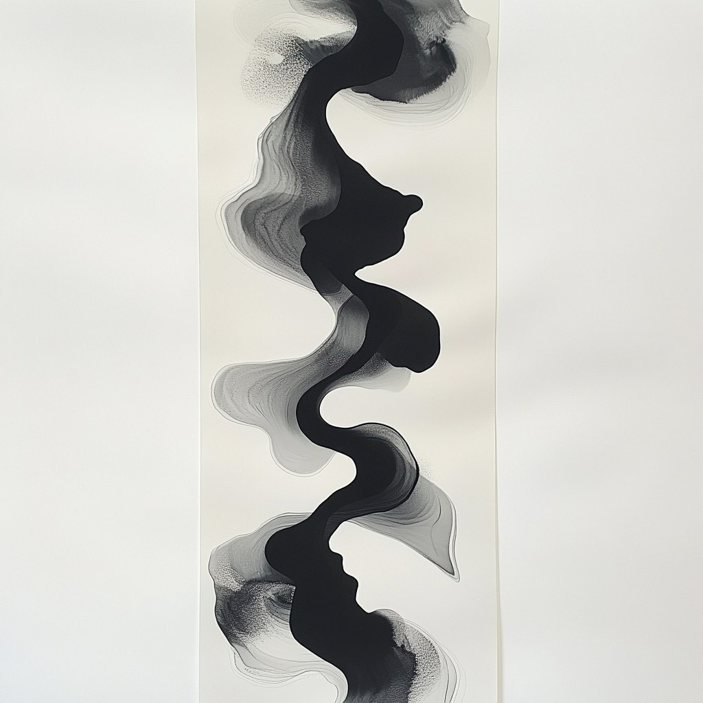 Создано на основе запроса: Long vertical artwork, abstract liquid-like flowing forms with bold black curves, smooth and organic movement