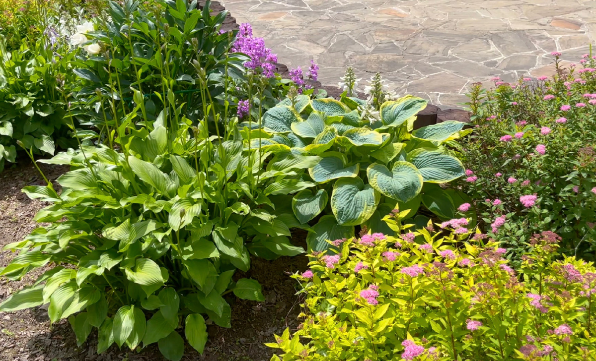 Растения у нас практически все многолетние травянистые и декоративные кустарники, из однолетних каждый год высаживем бархатцы, нравится петуния и лобелия. Поначалу, когда многолетних растений было немного, однолетних сажали значительно больше. Сейчас совсем немного, клумбы разрослись и места для летников мало.