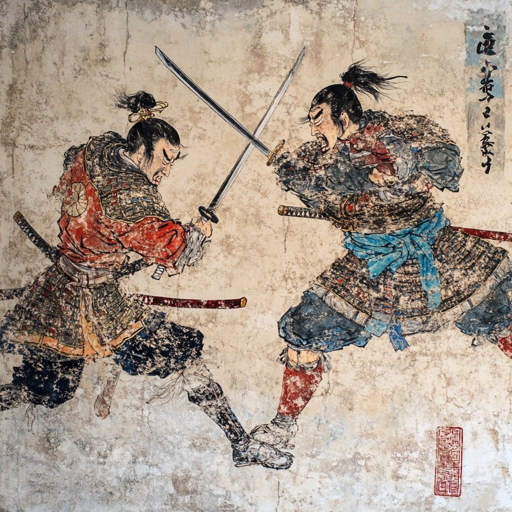 Создано на основе запроса: texture , edo era art, Japanese samurai fighting