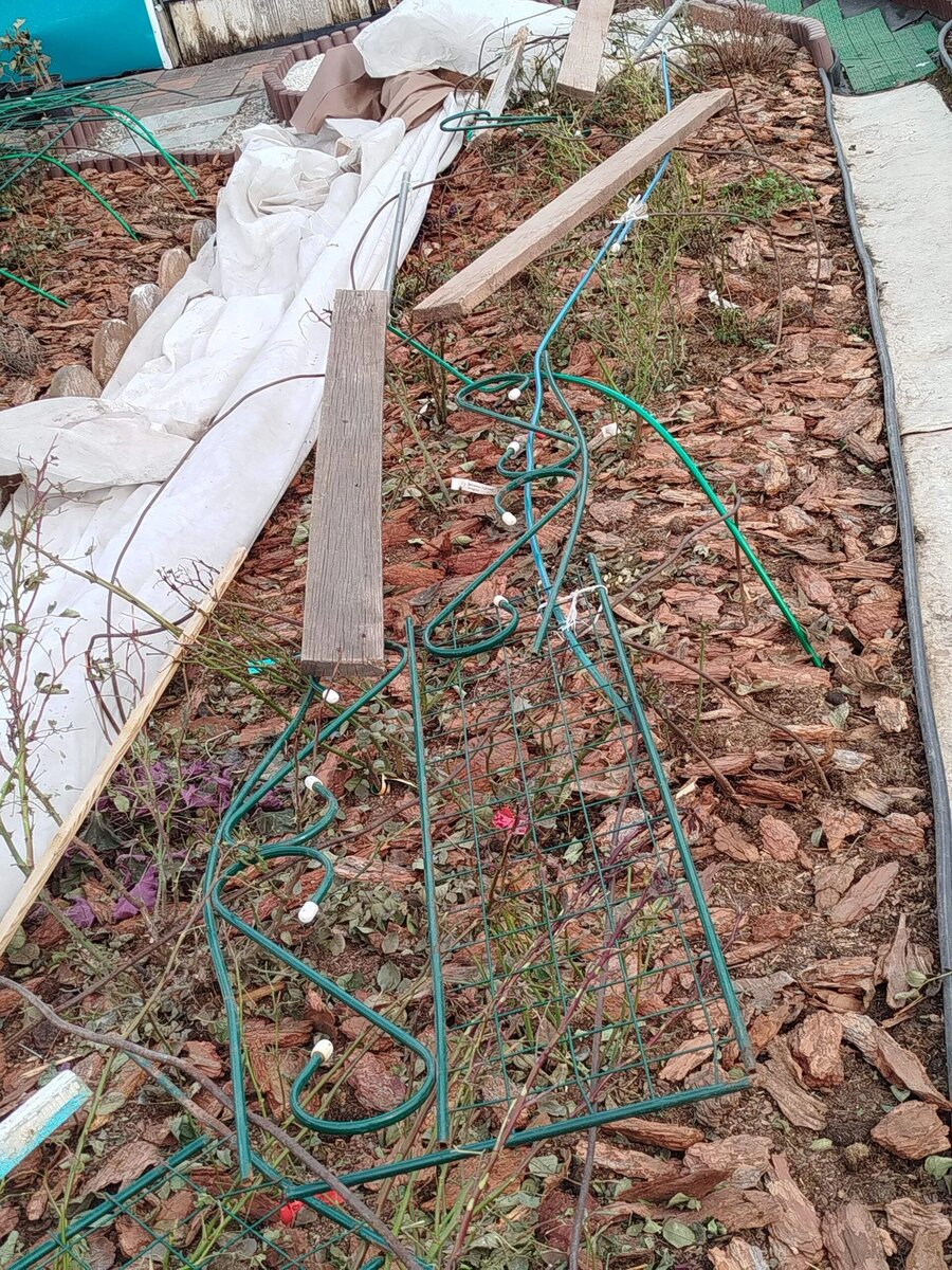 И снова Здравствуйте Дорогие Мои ! Сегодня я продолжу рассказ о розах которые открыла и почистила от листьев. Я не стала фотографировать каждую розу, во всех розария картина в общем одинаковая , Все Розы с зелеными побегами и прекрасно пережили эту зиму. Обрезкой не занималась, так как розы надо поднимать и смотреть, счистила с них только прошлогодние листья, они в большинстве своем были сухие и просто осыпались, когда подниму розы, я вымету аккуратно их веником. Дуги и доски не убирала, так как снова натянула укрывной обратно, на этой неделе снова похолодало и идет снег. Видно что Гейхера по левой стороне тоже перезимовала с розами и сохранила свежими листочки. Это Мускусная и Почвопокровные розы . Мускусные не обрезают , а полностью пригибают как и плетистые и тогда они будут цвести по всей длине побегов сверху до низу. Сразу не было видно, а на фотографиях пригляделась, мыши везде оставили на побегах свои метки от зубов, хотя и отравы много оставляла, вся была сьедена и диски с