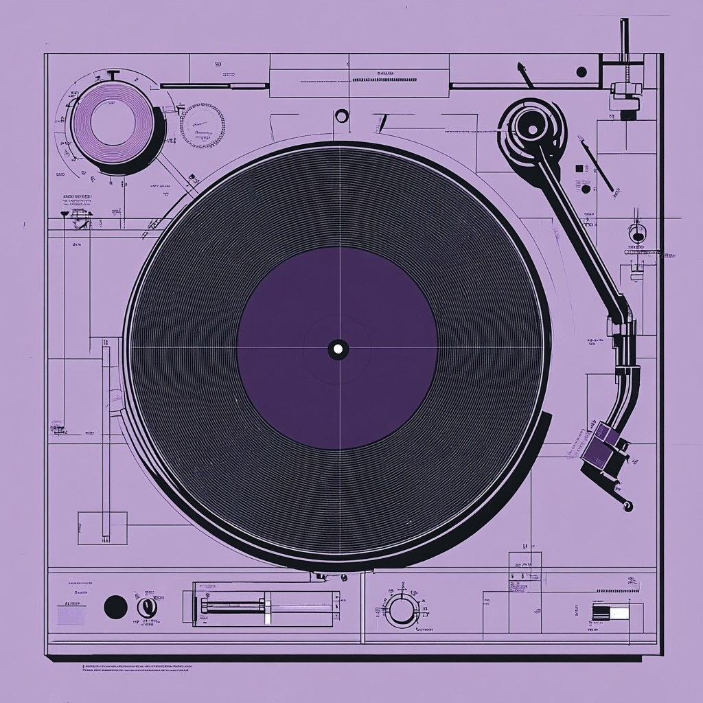 Создано на основе запроса: vector illustration of bauhaus schematic of Technics Records Player, hints of black and purple 3:4