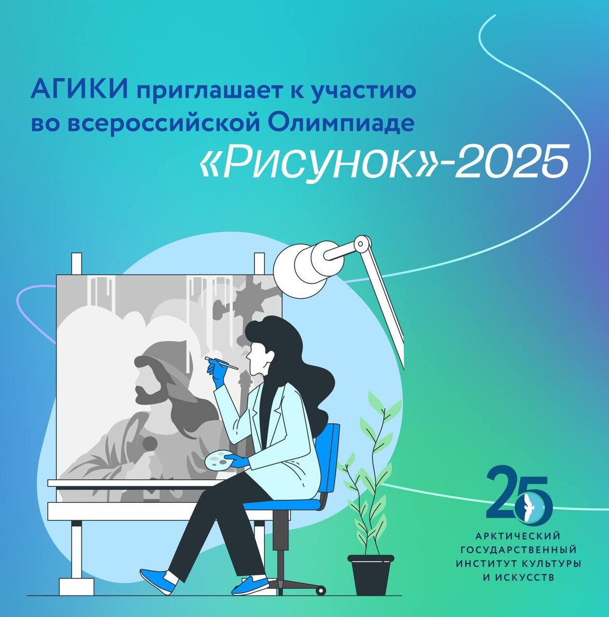 ✏️ Кафедра живописи и графики Арктического государственного института культуры и искусств (АГИКИ) приглашает вас на Вторую всероссийскую дистанционную олимпиаду по рисунку - 2025. Хочешь проверить свои силы и раскрыть свой творческий потенциал? Это твой шанс! В олимпиаде могут принять участие: 🔹Школьники (14-18 лет) 🔹Студенты (16-25 лет) Что нужно сделать: 🔹Самостоятельно поставить натюрморт из простых предметов 🔹Выполнить рисунок 🔹Подать заявку до 18 апреля 2025 г. на risunok_art2023@mail.ru (в теме письма указать «Олимпиада»). 🤩Все подробности о конкурсе - по ссылке: https://agiki.ru/press-center/news/for-students/risuy-tvori-razvivaysya-agiki-priglashaet-k-uchastiyu-vo-vserossiyskoy-olimpiade-risunok-2025/ Покажи свой талант всей России!