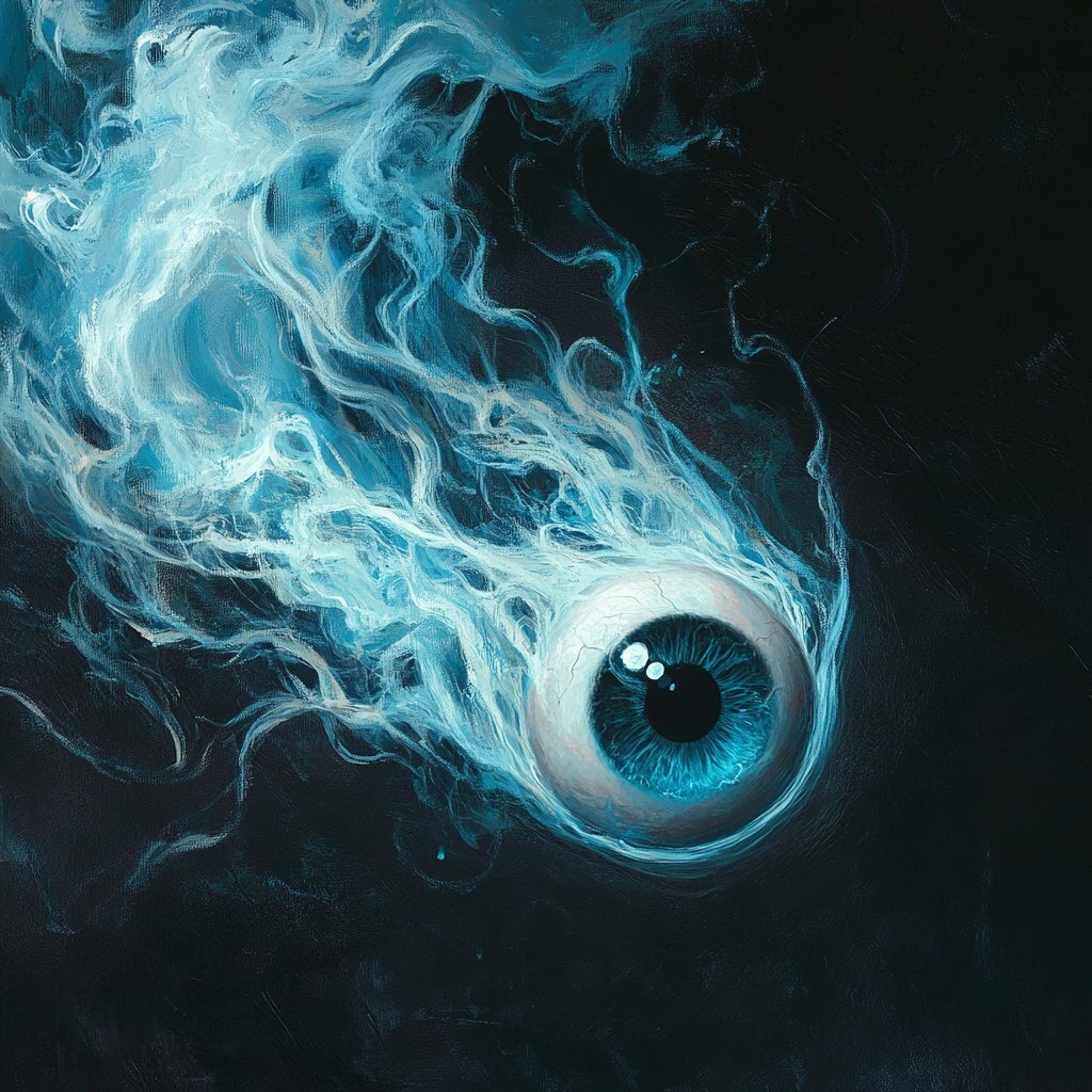 Создано на основе запроса: An arcane ghostly eyeball floating and leaving a trail of blueish smoke