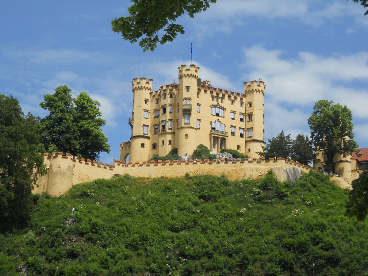 Замок Хоэншвангау, вошедший в историю как романтическая резиденция представителей династии Виттельсбахов, построен на месте крепости Шванштайн. Величественное сооружение принадлежало с XII века знатному роду Швангау. Его представителями были храбрые рыцари и знаменитые трубадуры. Здесь укрывался последний представитель королевского рода Гогенштауфен, принц Конрадин, преследуемый Папой Римским Климентом IV. В начале XVI века славный род Швангау прервался. В 1535 году крепость приобрел имперский советник Иохан фон Паумгартнер. В 1547 году он отстроил крепость и назвал ее Хоэншвангау или Гогеншвангау. К концу XVIII века сооружение пришло в упадок. А во время войны с Наполеоном древняя крепость, к большому сожалению, была разрушена окончательно. Вторую жизнь замку дал уже упомянутый Максимилиан II. В 1829 году, путешествуя по своим землям, тогда еще кронпринц восхитился красотой здешних мест. Его высочество выкупил развалины замка за 7 тысяч гульденов. В 1832 году под руководством известн