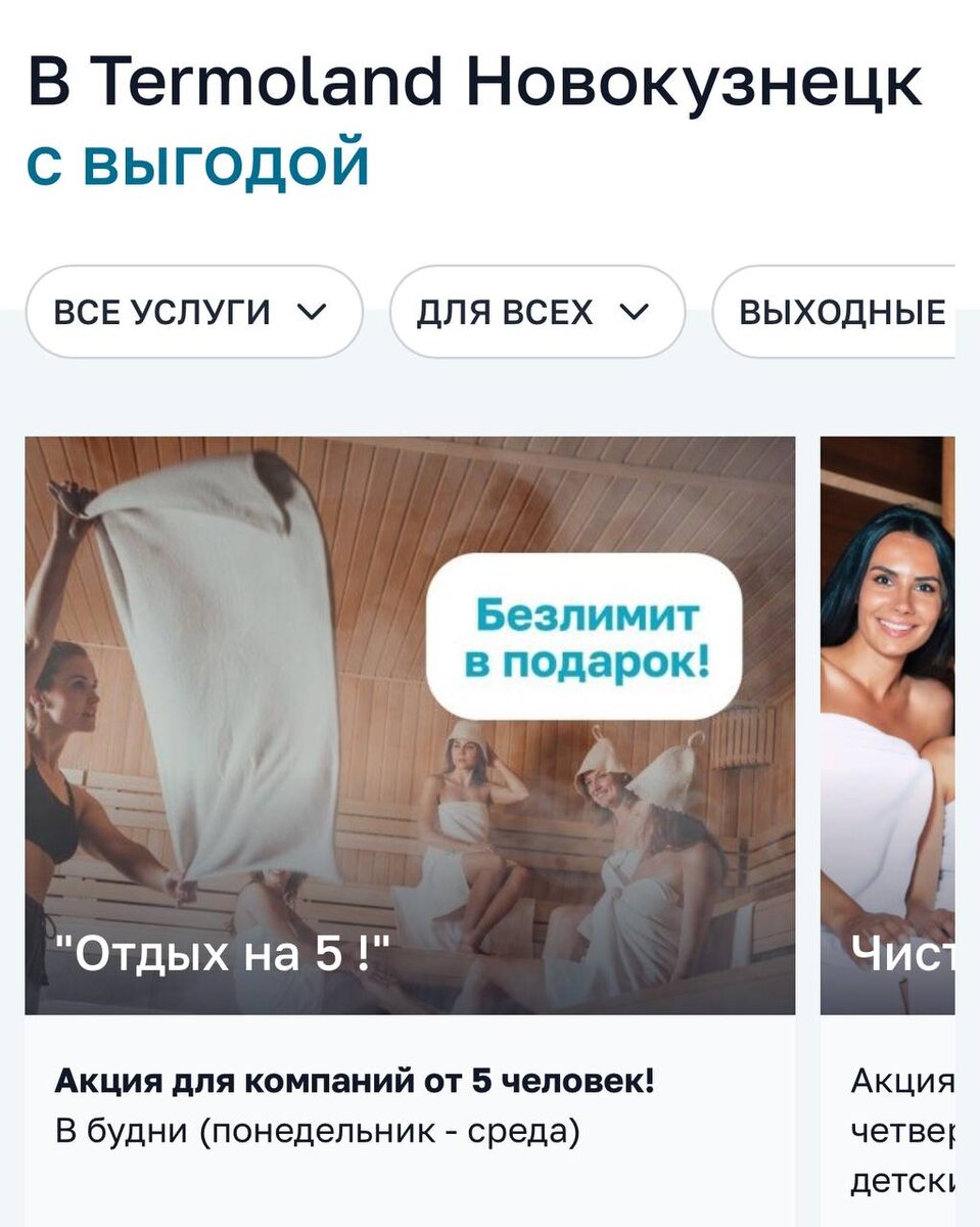 Подборка акций для посещения termoland в Новокузнецке ТРЦ "ПЛАНЕТА" ул. Доз 10А