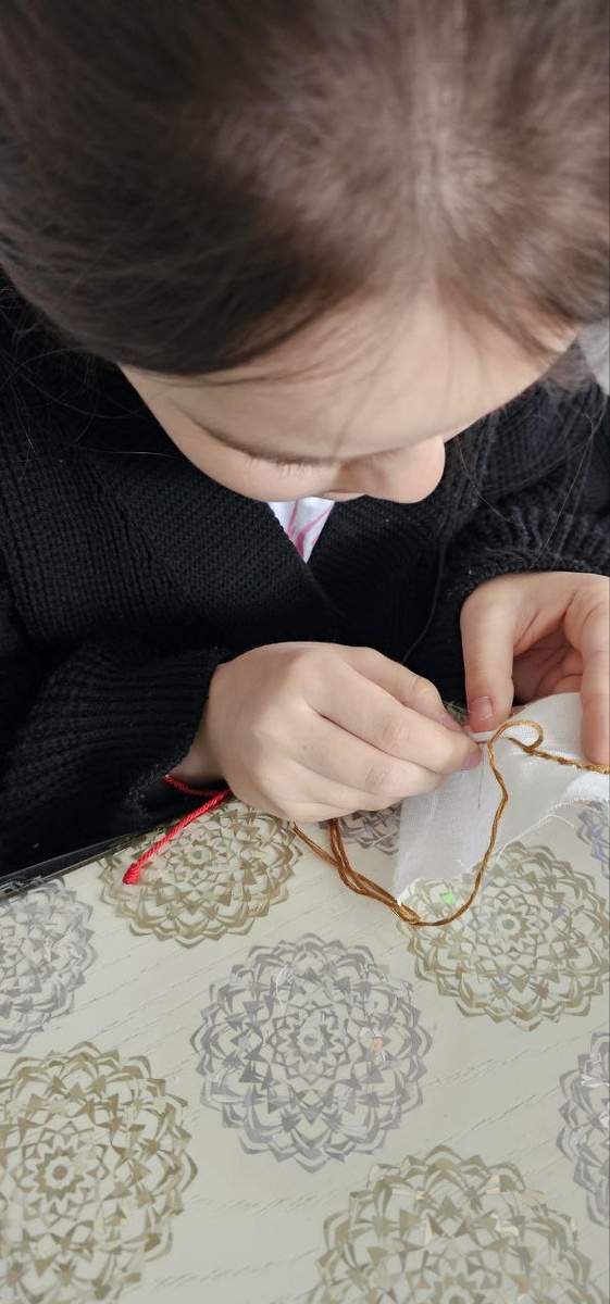 Всем привет! Учу Эрику вышивать. Сегодня в школе будут вышивать на уроке.