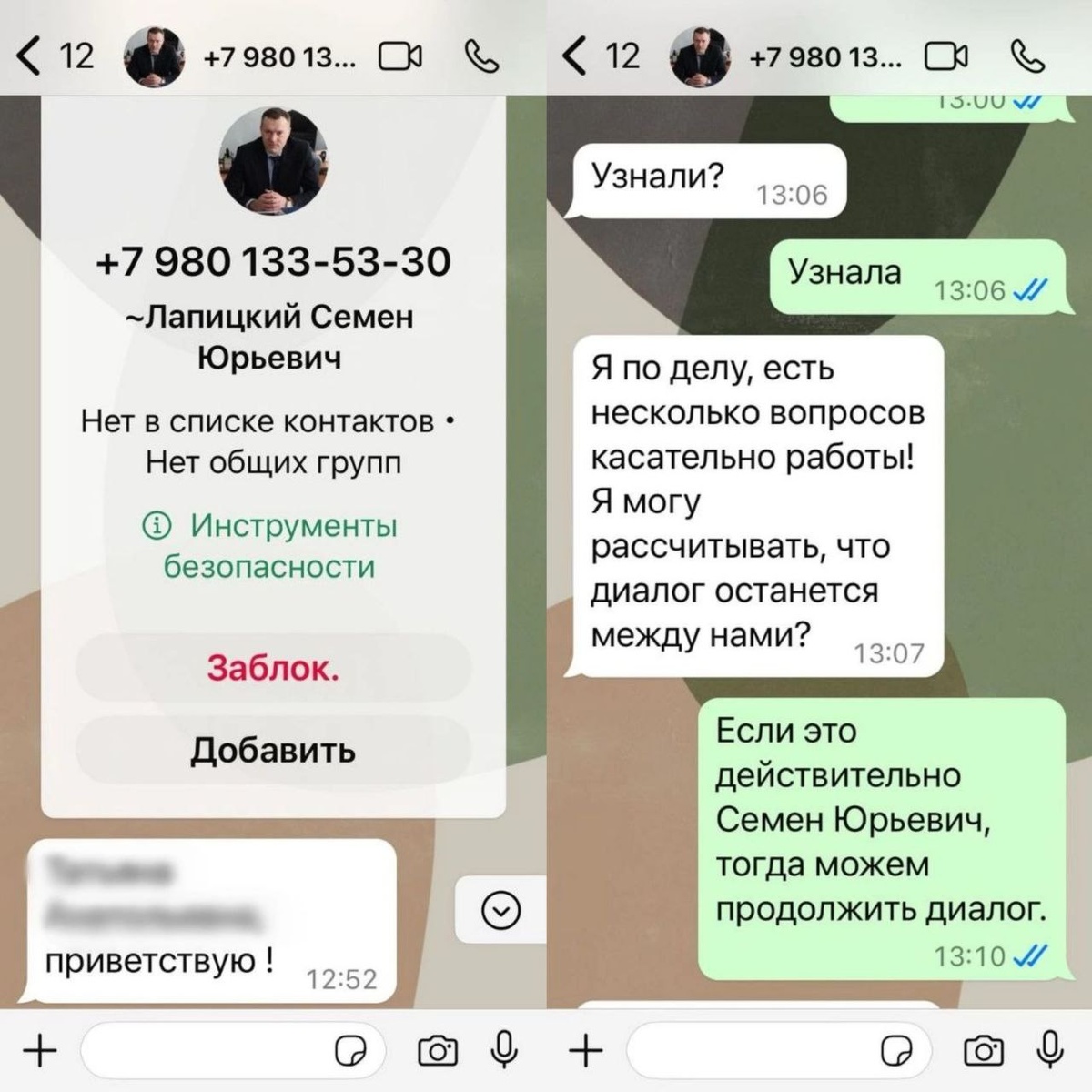 Зафиксирован факт использования фейкового аккаунта под именем Главы города Семена Лапицкого в WhatsApp Мошенники создали ложный профиль в мессенджере, очень похожий на профиль Семена Лапицкого, с которого и ведут переписку, пытаются получить персональные данные собеседника. #Бердск #ТВК #новости #администрация #мошенничество