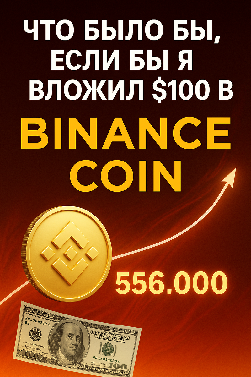 . Друзья, в этом выпуске рубрики «Что если бы?» я снова решил поиграть в «машину времени». Только на этот раз — не с акциями, а с криптовалютой. Мы не будем говорить про Биткоин, Эфир, Солану, Догекоин или Рипл. Сегодня у нас на прицеле менее обсуждаемая, но всё же известная криптовалюта — Binance Coin, или сокращённо BNB. Вспомним, что было в 2017 году Да, вы не ослышались. Ровно 8 лет назад, в июле 2017 года, крупнейшая в мире криптобиржа Binance запустила свою собственную монету. Она тогда стоила всего 10 центов за штуку. Это был обычный “технический токен” биржи, с помощью которого можно было, например, получать скидки на комиссии. Многие не верили, что из него вырастет что-то серьёзное. Но что, если бы я тогда поверил — и вложил в BNB всего 100 долларов? Немного математики На 100 долларов в 2017 году можно было купить 1 000 монет BNB, ведь одна стоила всего 0,10 доллара. А сколько они стоят сейчас? В апреле 2025 года цена одного токена держится на уровне 556 долларов. По