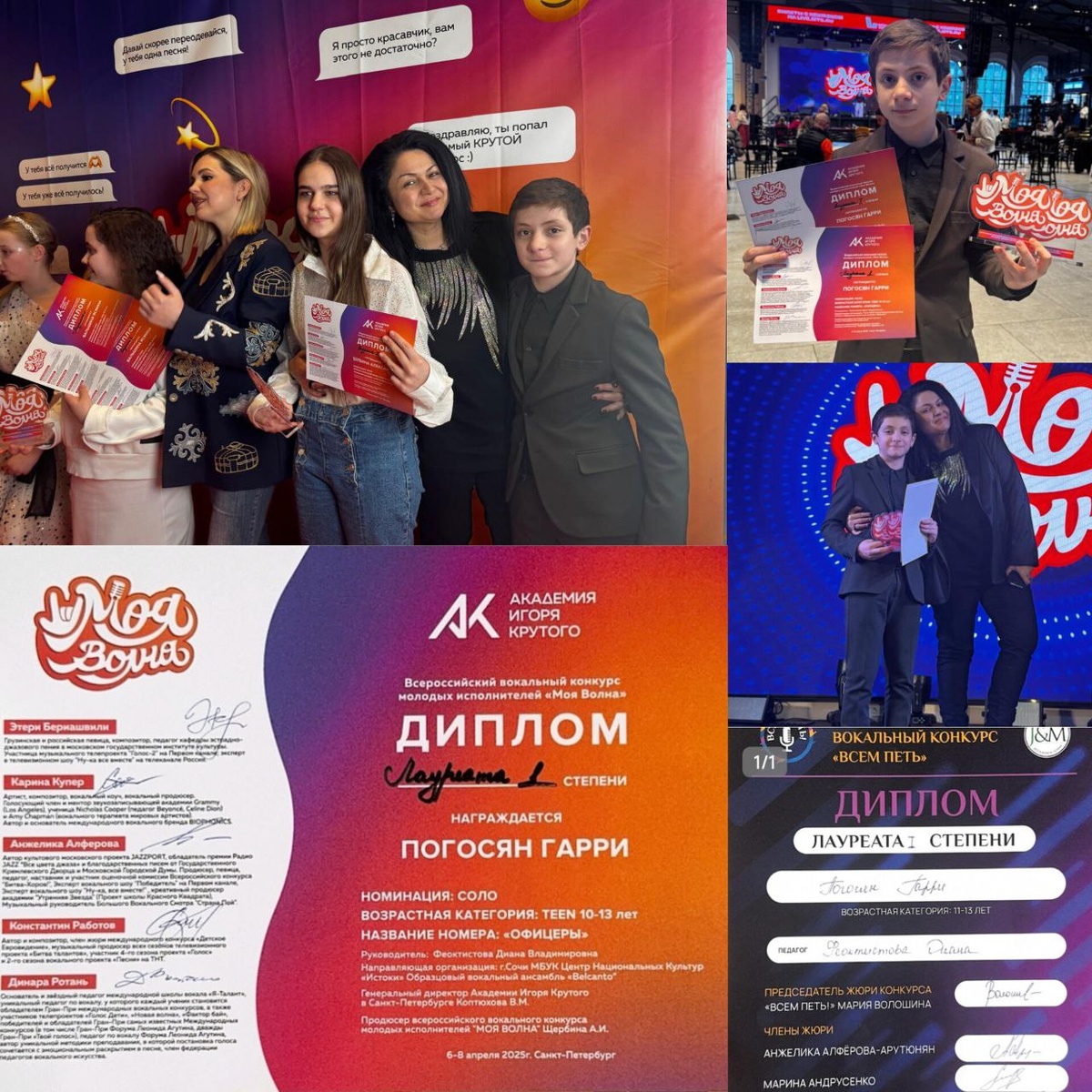 Всероссийских вокальных конкурсов молодых исполнителей "Моя волна" и "Всем петь", академии Игоря Крутого, который прошёл в Санкт-Петербурге 7-8 апреля.