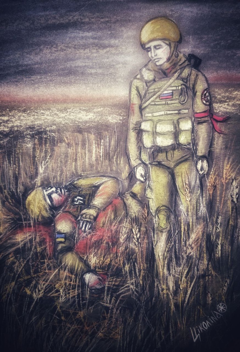 Мой враг В краю загубленного хлеба, В побитом взрывом поле ржи, Подмяв спиной тугие стебли, Рукой к земле, глазами в небо, Солдат израненный лежит. Он что-то мне хрипел на мове, Мол, русский он не признаёт. В бессильной ярости и боли, С губами в алой пене крови Кривился почерневший рот. Видна в его щетине проседь, Тщедушен, ростом невысок. Он ничего у нас не просит. Зажав в кулак, он в смерть уносит Кровавый хлебный колосок. Закажут в Киеве молебен Перед иконами в слезах. Он в храме, может быть, и не был. Так равнодушно смотрит небо Ему в застывшие глаза. Кто оправдает, кто осудит, Кому невинный виноват. На небесах рассудят судьи И посчитают в книге судеб Все прегрешения солдат. По мне же он как есть виновен: Кровей славянских, всякий раз Держал снаряды наготове И заливал славянской кровью Непокорившийся Донбасс. Нациста славил. Почему-то Себя вознёс на пьедестал. В свою последнюю минуту Меня он ненавидел люто И мой язык, который знал. Стоял за гранью невозврата. Он мне не брат