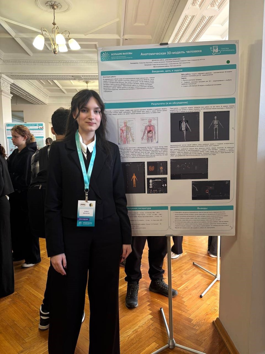 🚀 Участие ученицы IT-класса в конкурсе «Большие вызовы» Алена, ученица 11 «А» класса, приняла участие в престижном конкурсе «Большие вызовы». Она прошла дистанционный этап, затем успешно защитила свою работу в Институте молекулярной биологии РАН. Алена рассказала: 💬 «Хотя тематика моего проекта немного отличалась от основного направления конкурса, работа понравилась экспертам, и я получила приглашение на очную защиту. Это был уникальный опыт, который помог мне узнать новое и завести полезные знакомства». 🔠 Алёна отметила, что все представленные проекты были интересными и полезными, и она с удовольствием слушала выступления участников. 🎉 Желаем Алене дальнейших успехов и новых побед! #ДОНМ #Предпрофкласс