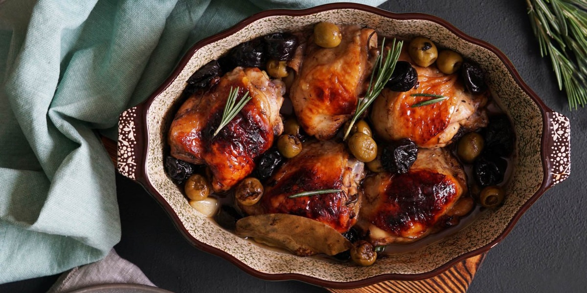 Куриные бедра в маринаде🍗 Нежное мясо, пропитанное ароматами оливкового масла, красного винного уксуса и пряностей, сочетает в себе сладость чернослива и легкую соленость каперсов и оливок. 🍃🍃🍃🍃🍃 • Оливковое масло - 60 мл • Красный винный уксус - 60 мл • Каперсы - 3 ст. ложки • Оливки без косточек - 100 г • Чернослив - 150 г • Чеснок - 3 зубчика • Лавровые листья - 3 шт. • Розмарин - 1 веточка • Соль - 2 ч. ложки • Сушёный орегано - 1 ст. ложка • Куриные бёдра - 1 кг • Сухое белое вино - 130 мл • Сахар - 3 ст. ложки 🍃🍃🍃🍃🍃🍃🍃🍃 • В глубокой миске смешайте оливковое масло, уксус, каперсы, оливки, чернослив, чеснок, лавровые листья, розмарин, соль и орегано. • Добавьте куриные бёдра и перемешайте, чтобы они равномерно покрылись маринадом. • Накройте миску крышкой или пленкой и оставьте в холодильнике минимум на 2–3 часа (желательно несколько раз перемешать). • За полчаса до запекания достаньте курицу из холодильника. • Выложите курицу и маринад в форму для запекания, полейте