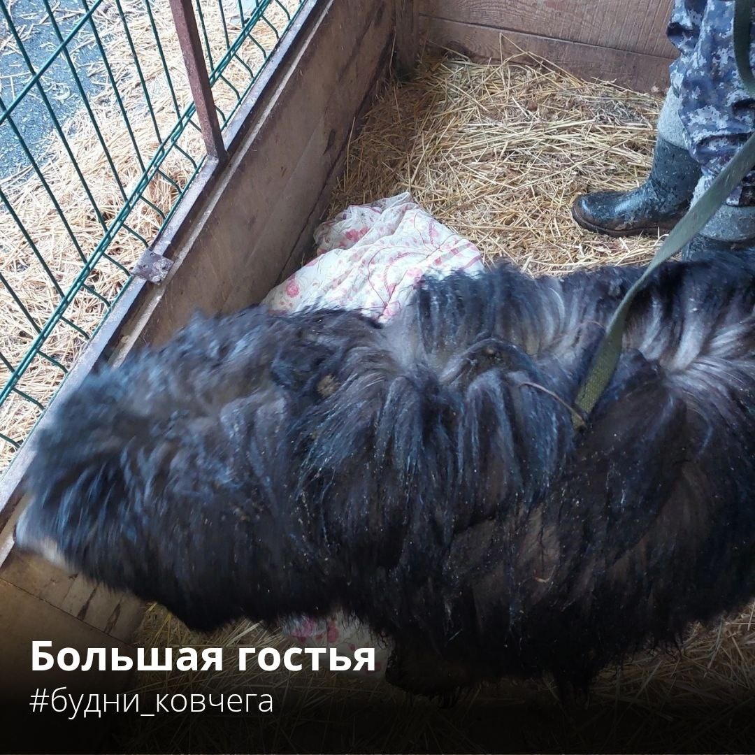 БОЛЬШАЯ ГОСТЬЯ.🐶 На прошлой неделе на базу, где находится "Ковчег", пришла собака. Большая, лохматая, грязная, голодная, уставшая, шерсть скатана- видно, что скитается давно.😒 По виду- тибетский мастиф. Охранники сообщили Надежде о собаке. Волонтёр Ольга привезла собаку в "Ковчег". Поместили собачулю в небольшой вольер, под седацией осмотрели её, попытались найти клеймо. В это же самое время писали и звонили всем, кому только можно- ведь ясно, что собака попала в беду.🔔📣 Откликнулась группа "Помощь тибетским мастифам, попавшим в беду" https://vk.com/public198463566 Попросили придержать собаку несколько дней, пока будут искать какой-то выход из ситуации. Конечно же, мы придержали нашу большую гостью. Накормили-напоили-спать уложили.😊 В результате собачуля пробыла в "Ковчеге" чуть больше суток. Потом её забрали на породную передержку, привели в порядок, свозили в клинику. Нашли клеймо, по нему вышли на питомник, через него нашли хозяев Литы- именно так зовут нашу большую го