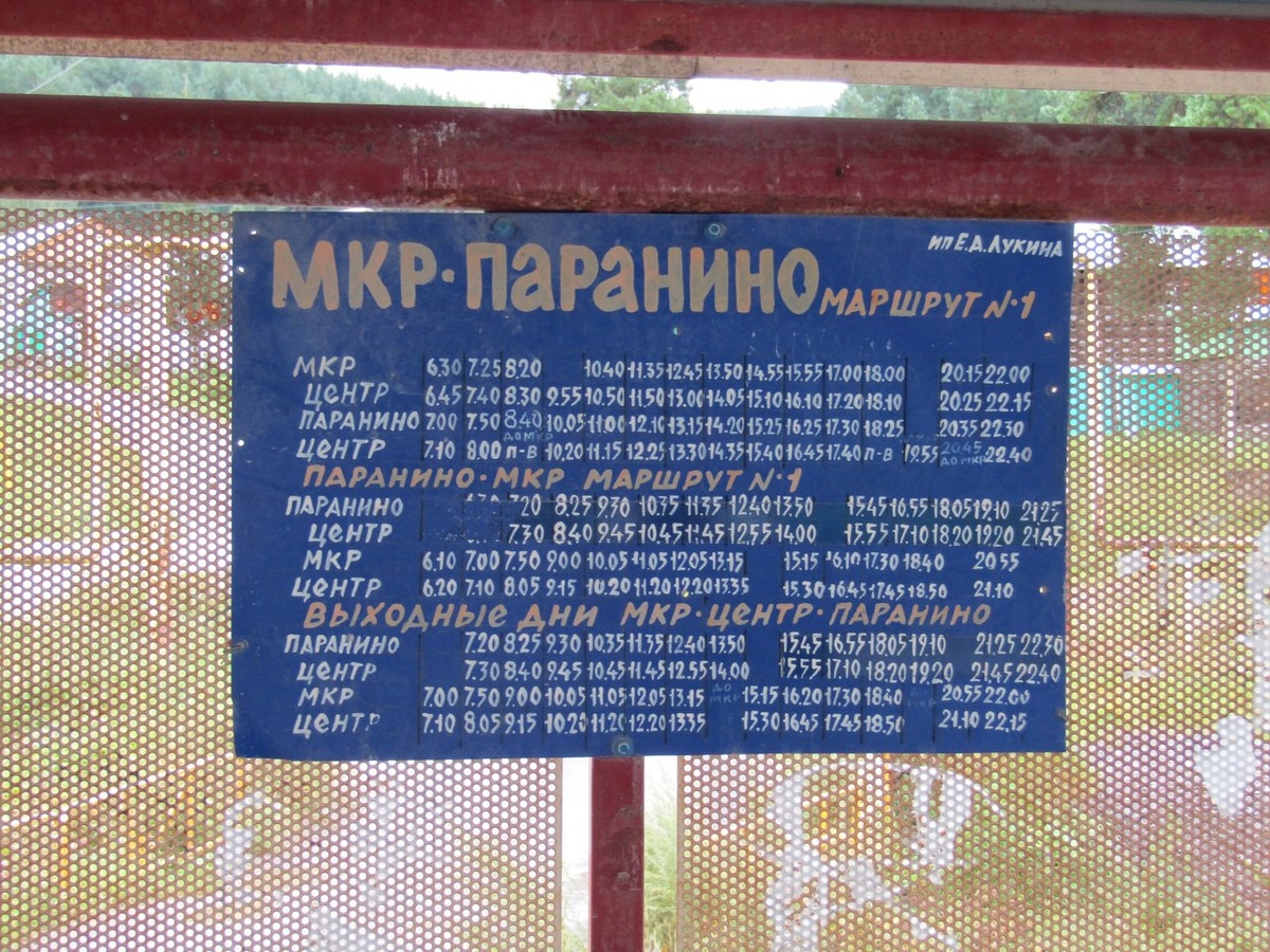 Автобусное расписание выполненное от руки в городе Усть-Катав (Челябинская область)